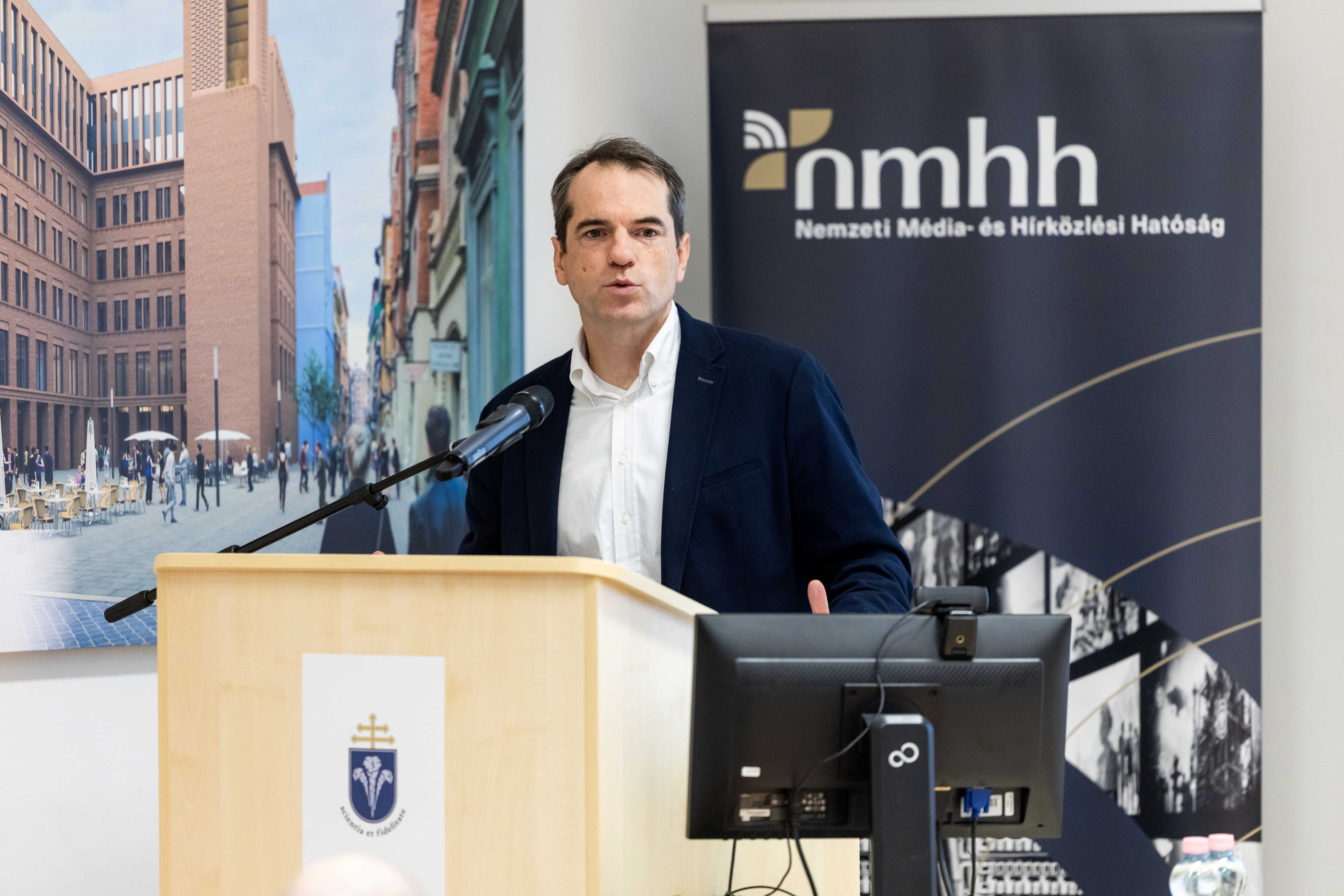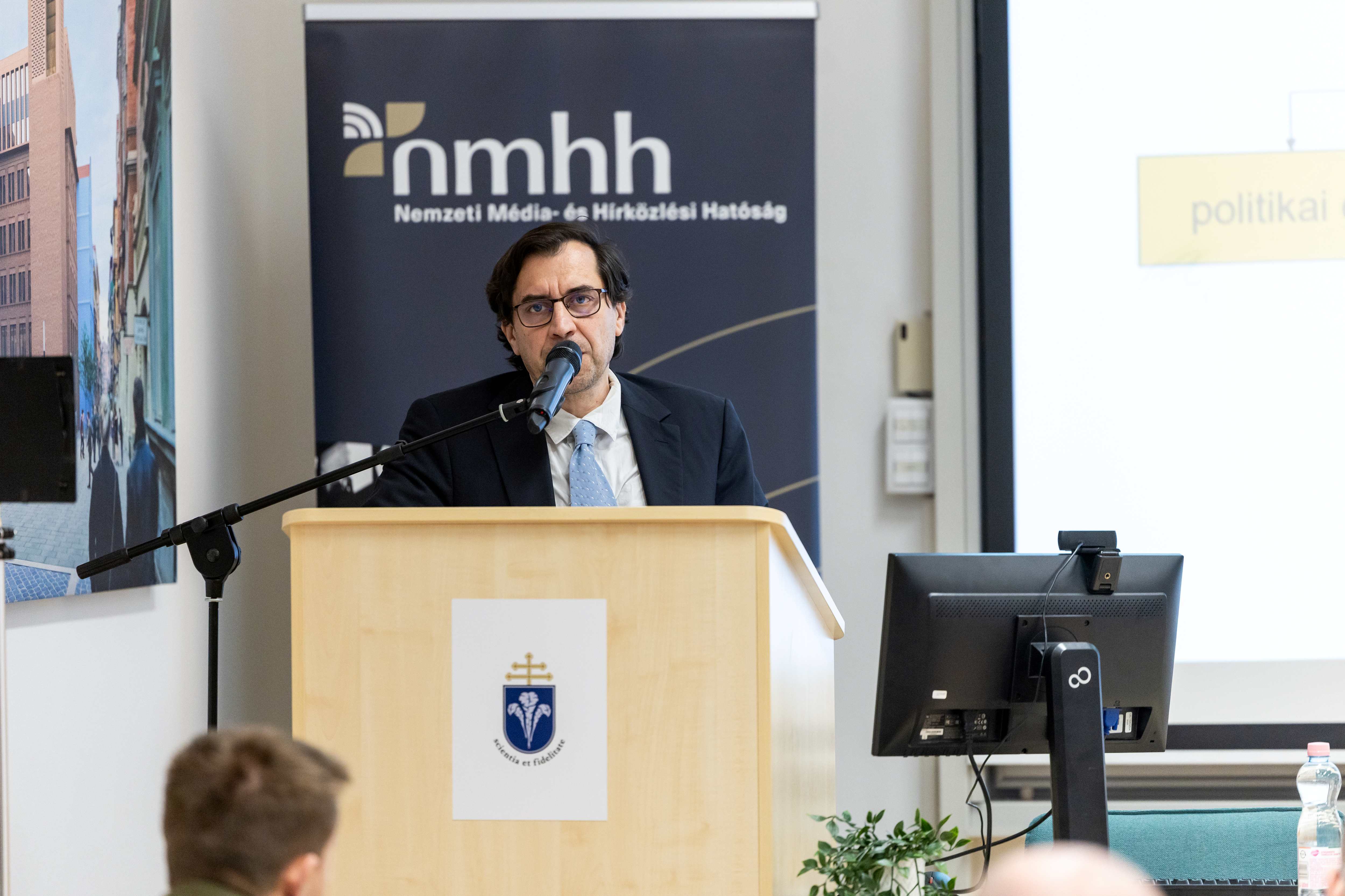 Nyakas Levente, Intézetünk vezetője plenáris előadásában a médiaszabályozás közérdekű célkitűzéseit és a platformizáció összefüggéseit vizsgálta, azaz hogy a médiaszabályozás által kitűzött közérdekű célkitűzések, amelyek a hagyományos tömegkommunikációhoz kapcsolódnak, érvényesek-e, és ha igen, miként valósíthatók meg, védhetők az online médiakörnyezetben, ahol a személyközi meggyőzés kerül előtérbe. Az előadás során bemutatta platformizáció által generált, a médiaszabályozást érintő (jogértelmezési korlátok, transzparencia hiánya, joghatósági korlátok, empirikus bizonyítékok hiánya stb.) kihívásokat, valamint példákat arra hozott arra, hogy miként reagált ezekre a kihívásokra az uniós jogalkotó a különböző jogi eszközeivel (DSA rendelet, EMFA rendelet, AVMS irányelv, Dezinformációs kódex) a gyakorlatban.